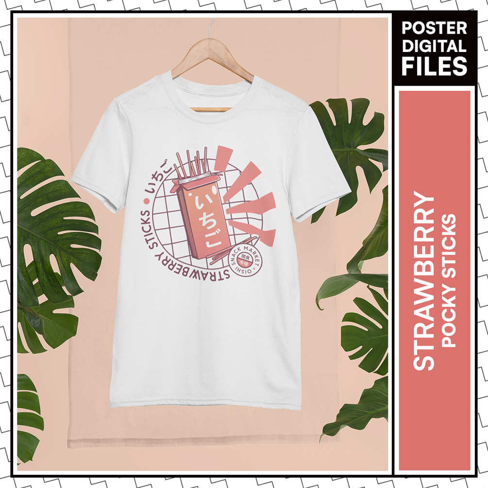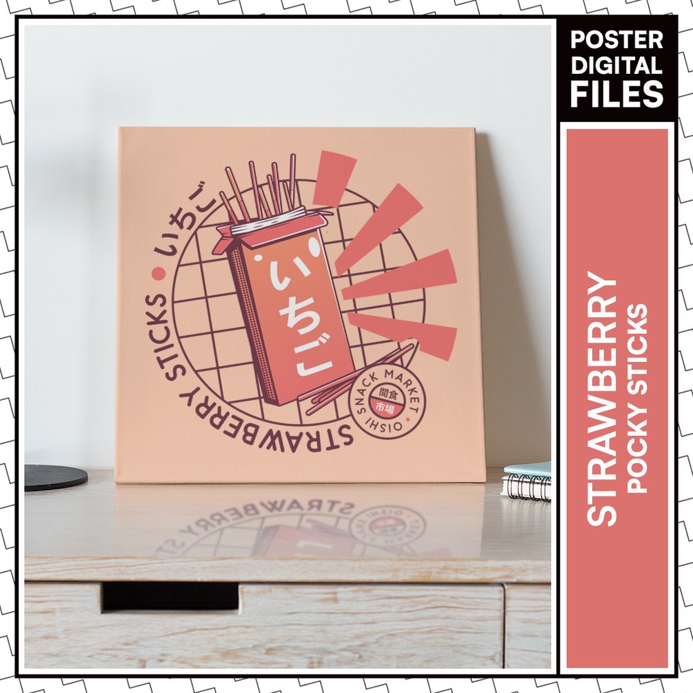 Strawberry Pocky Sticks PNG Design - Japanese Design Style Digital Files