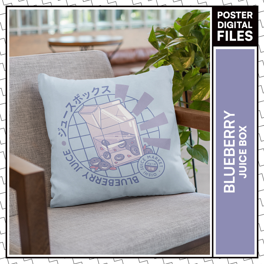 Blueberry Juice Box PNG Design - Japanese Design Style Digital Files